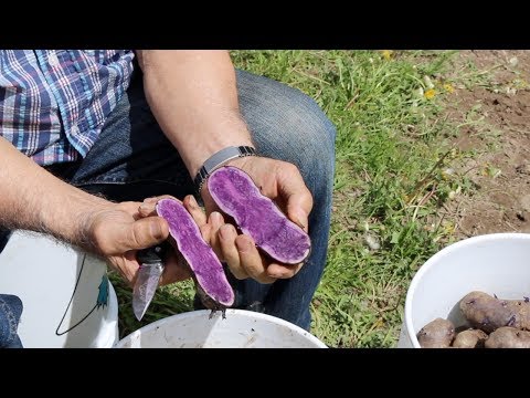 Planting Purple Potatoes - Where Are Purple Potatoes Grown - My Father planting some Russian Blue potatoes. These potatoes have just as much antioxidant as blueberries!