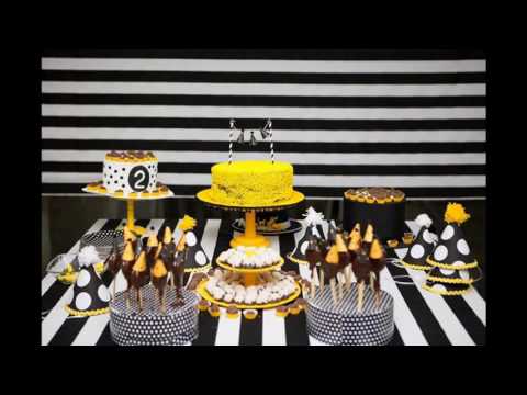 Yellow and black party themed decorating ideas - Black And Yellow Dessert Table - Check out the video of best collection of party decorating ideas and get ideas of invitations to thank-you cards, find all the indoor and outdoor decorations, party ...