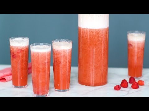 Raspberry-Pineapple Bellini- Martha Stewart - Pineapple Bellini Recipe - This colorful and bubbly drink is inspired by a French martini. Get the recipe: http://www.marthastewart.com/1515552/pineapple-raspberry-bellini Brought to you ...